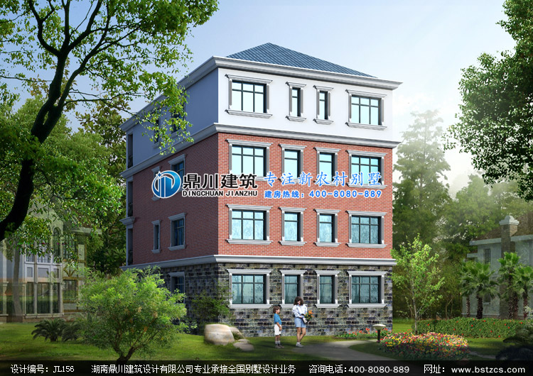 JL156新農村四層別墅設計圖紙外觀效果圖,鼎川建筑鄉村四層別墅圖紙設計