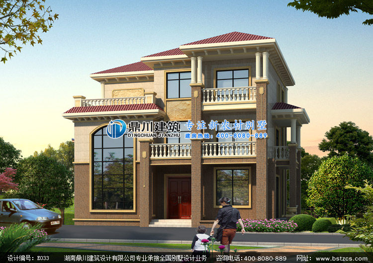 E033三層帶露臺簡歐別墅設(shè)計圖紙外觀效果圖,農(nóng)村復(fù)式三層別墅定制設(shè)計