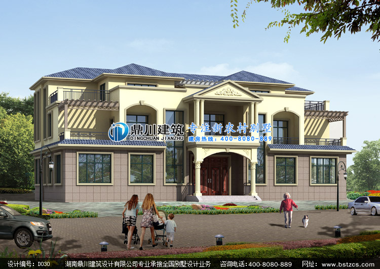 D030二層半雙拼別墅設計圖紙外觀效果圖,新農村兩層半雙拼別墅設計圖效果圖