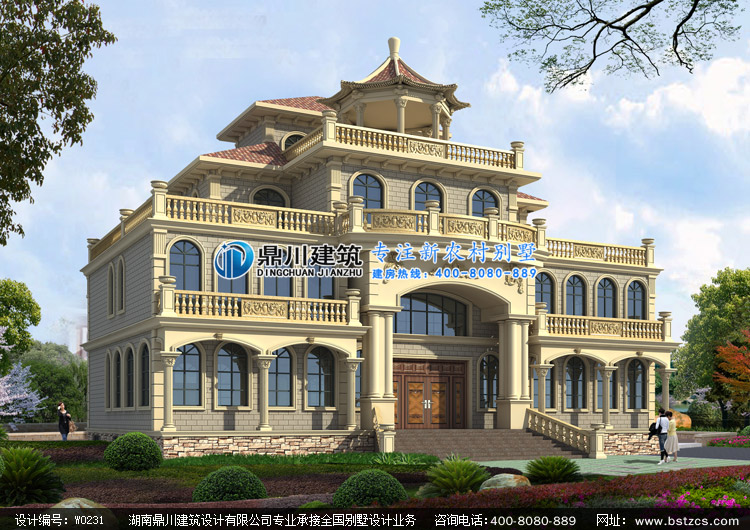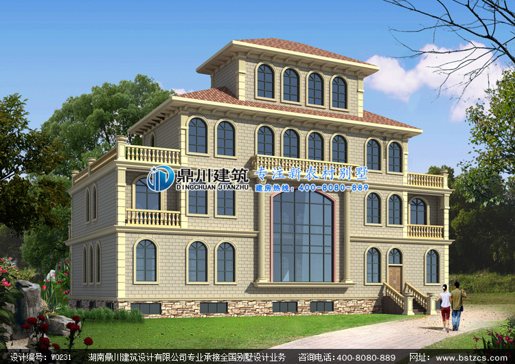W0231豪華漂亮的四層酒店式別墅設計圖外觀效果圖,鼎川建筑四層豪華別墅圖紙設計