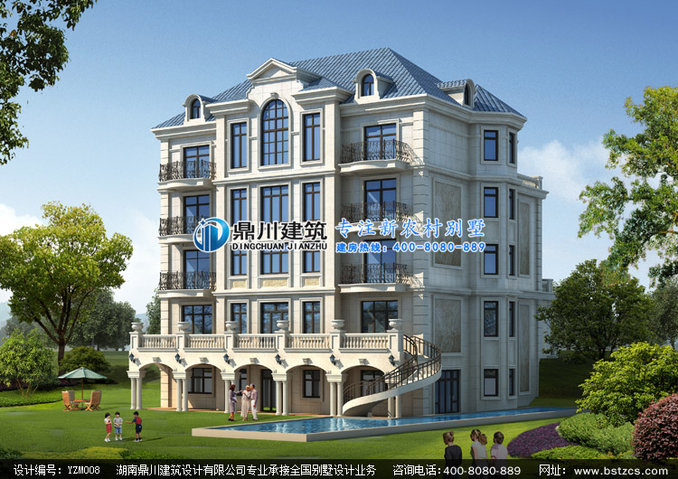 首頁 > 設(shè)計(jì)案例 > YZM008漂亮的四層帶地下室法式別墅設(shè)計(jì)圖紙效果圖,新農(nóng)村四層別墅設(shè)計(jì)圖紙
