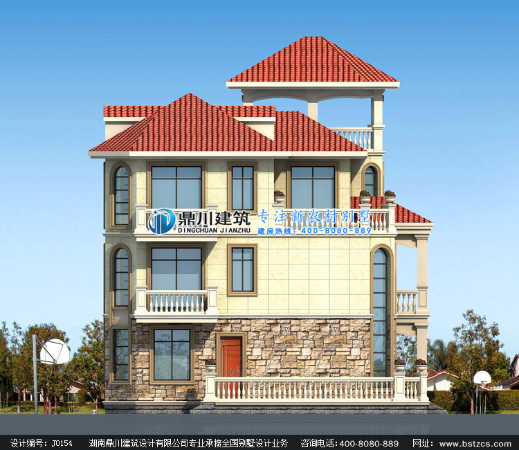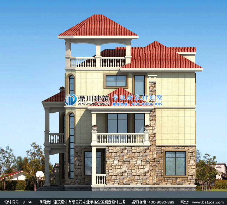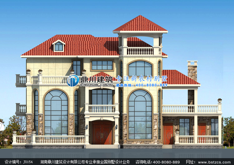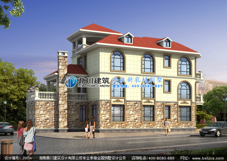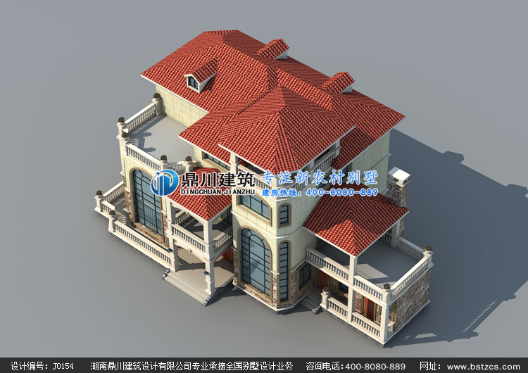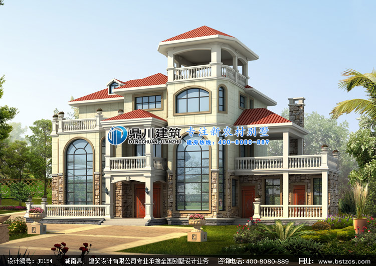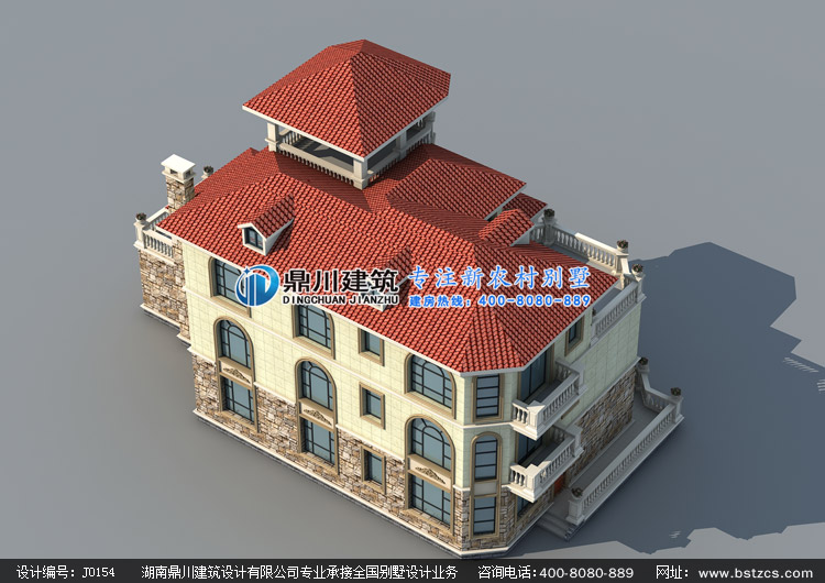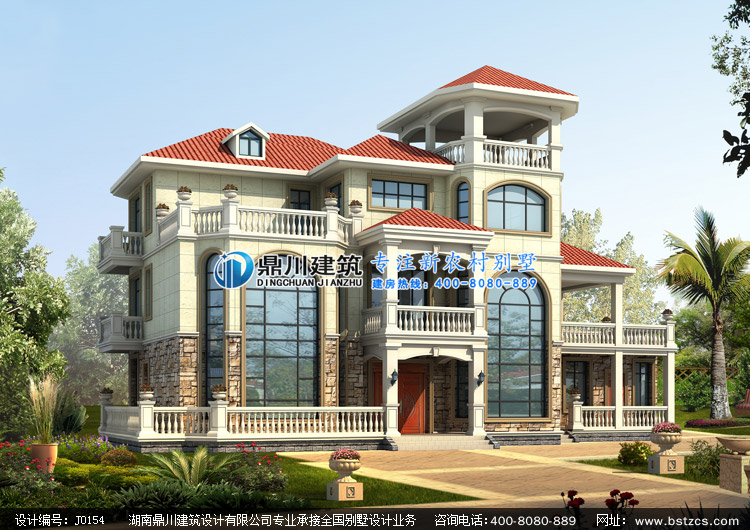 J0154復式三層帶涼亭歐式別墅設計圖紙外觀效果圖,鼎川建筑三層農村別墅圖紙私人定制設計