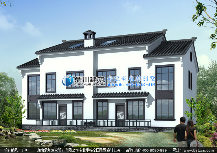 JL083中式二層帶閣樓雙拼自建房設計圖紙效果圖,中式二層雙拼別墅私人定制設計