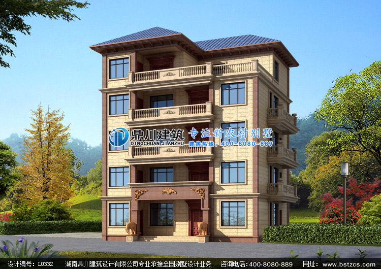 L0332新農村五層自建別墅設計圖紙外觀效果圖,農村多層別墅設計私人定制