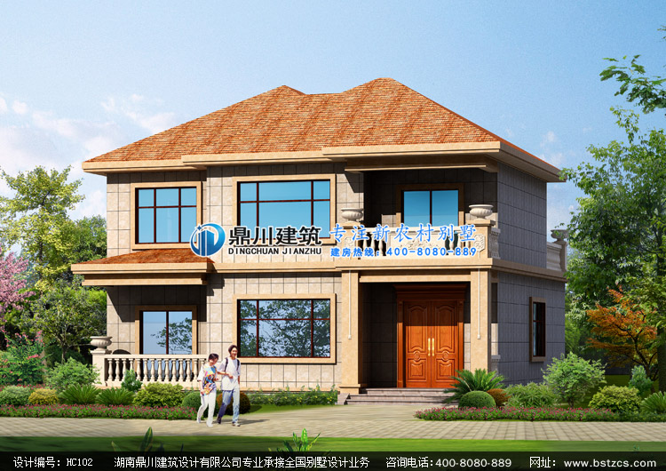 HC102農村二層小別墅設計圖紙效果圖,鄉村兩層自建小別墅圖紙設計
