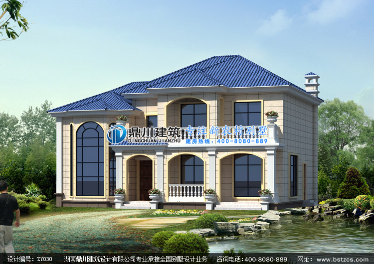 ZY030復式二層小別墅設計圖效果圖,新農村兩層自建別墅圖紙外觀效果圖