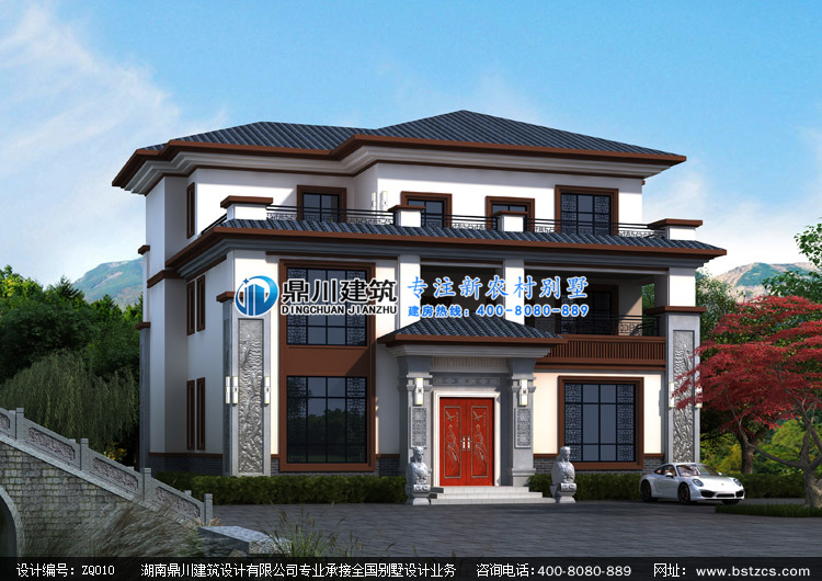 ZQ010新中式三層帶露臺別墅設計圖紙效果圖,鼎川建筑三層中式別墅私人定制設計圖紙