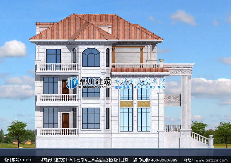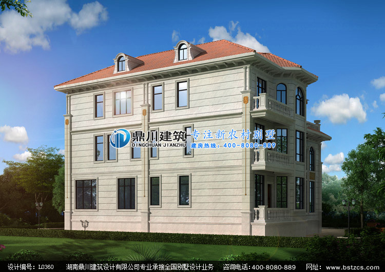 L0360復式三層豪華歐式別墅設計圖紙外觀效果圖,鼎川建筑三層歐式別墅私人定制設計