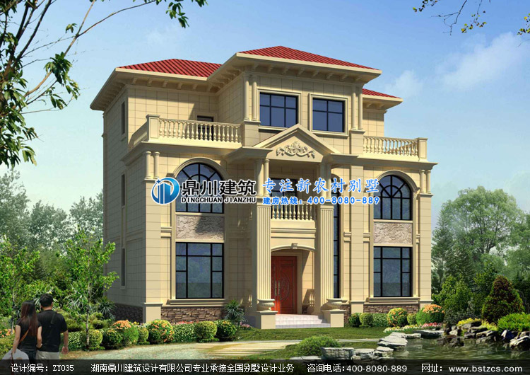 ZY035三層歐式別墅設計圖紙外觀效果圖,新農村自建別墅圖紙定制設計