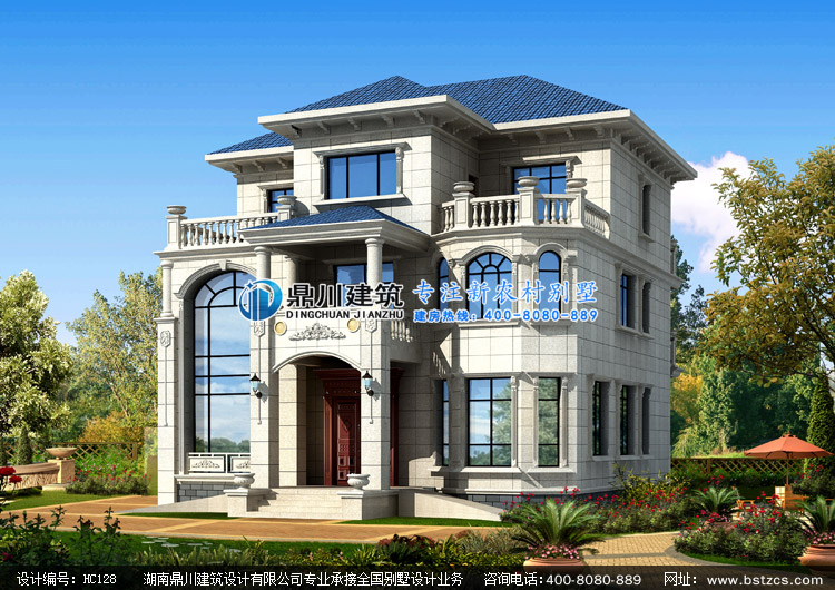 HC128復式三層帶露臺農村別墅設計圖紙外觀效果圖,新農村三層歐式別墅設計圖