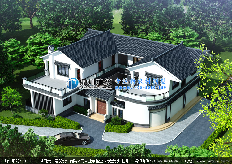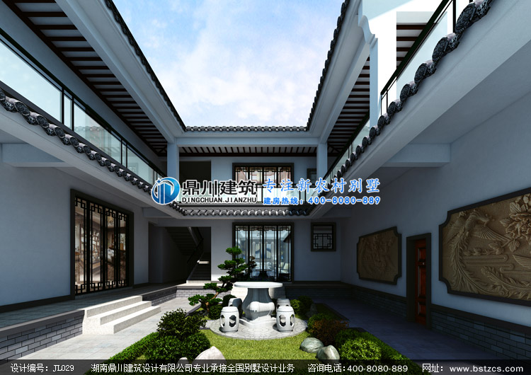 JL029二層中式合院自建房屋設計圖紙外觀效果圖,鼎川建筑中式四合院設計圖紙