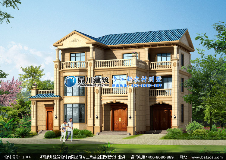 JL002三層帶露臺農村別墅設計圖外觀效果圖,新農村三層自建別墅設計圖紙