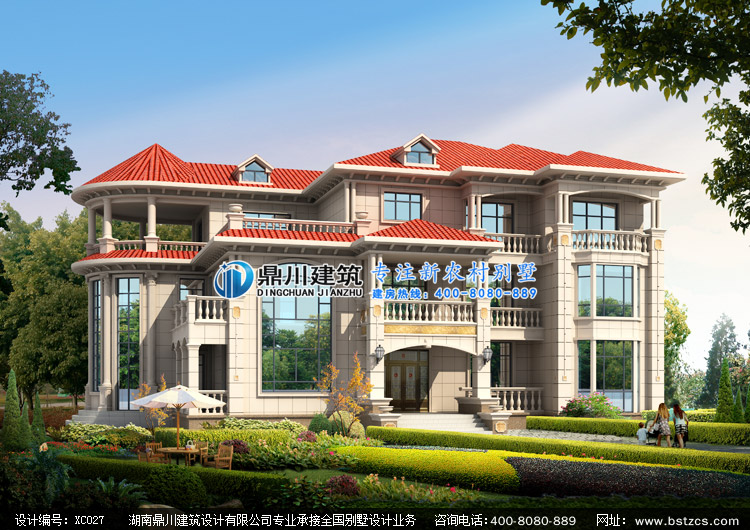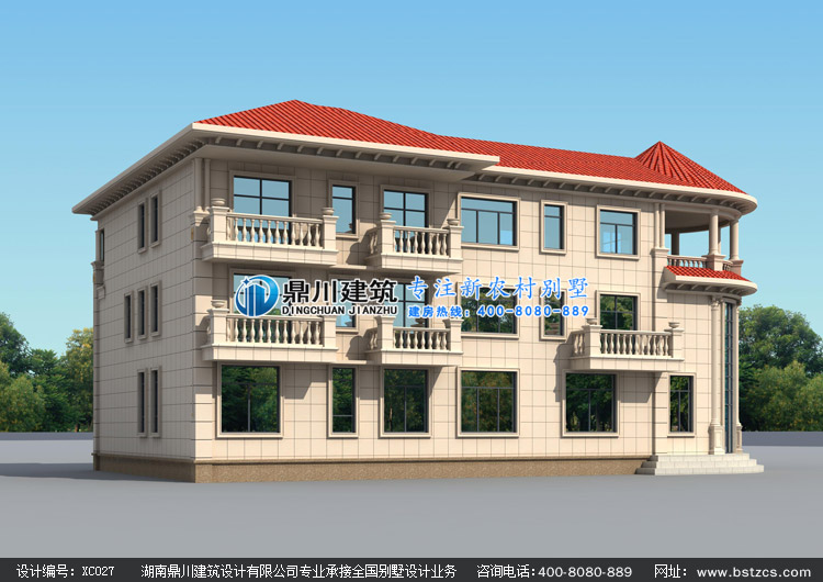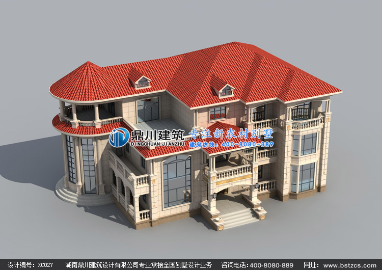 XC027大氣三層歐式別墅設計圖紙外觀效果圖,三層歐式別墅私人定制設計圖紙效果圖