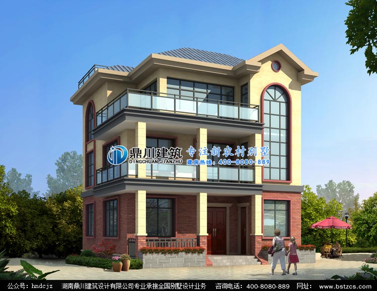 M0232三層帶陽臺別墅設計外觀效果圖,農村三層自建房圖紙設計