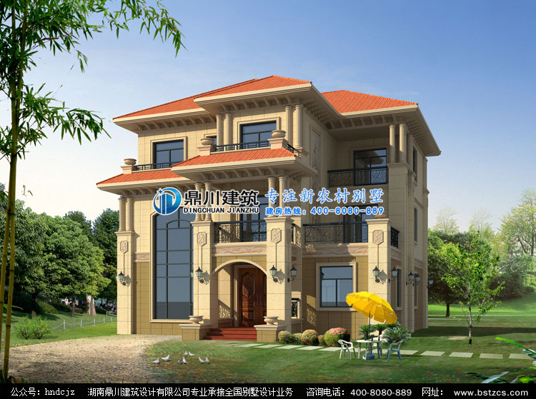M0245歐式三層別墅圖紙設計外觀效果圖,鼎川建筑別墅私人定制設計
