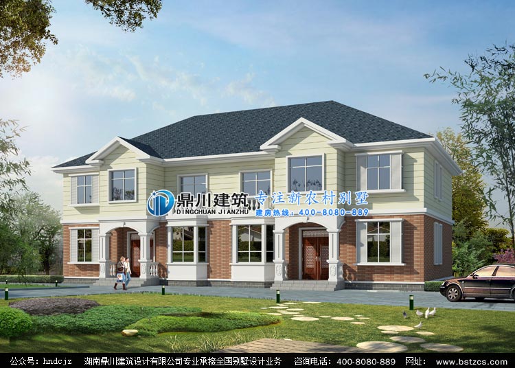 G.W0204農村二層雙拼別墅設計圖,兩層雙拼自建房屋圖紙設計外觀效果圖