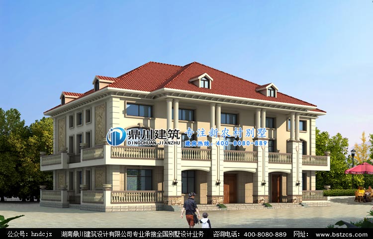 D0222三層雙拼別墅設計圖紙外觀效果圖,鼎川建筑雙拼別墅圖紙設計