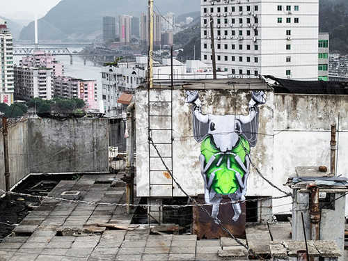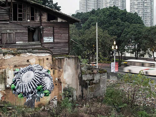 ludo在建筑廢墟上繪制了一系列藝術繪畫,讓他的藝術和中國文化進行了面對面的交流。他的畫將植物和動物帶入了21世紀的城市,與城市形成了互補的有機體,既優雅又激烈。他在畫中運用了他標志性的綠色,將自然、科技、美學和暴力融為一體,在破舊的籬笆上、破敗的墻上以及建筑外墻上都留下了一些大型作品。藝術家短暫的作品以照片的形式記錄下了中國社會正在發生的快速轉變,傳達出了重生、希望和敬畏之意。