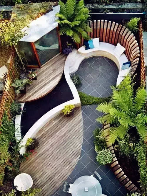你可能會擔心自家的院子太小沒法好好打造,沒事,既然空間不大,我們就盡可能簡化所有可能的裝飾,也不考慮其它的使用功能了,就把它打造成一個大花園。在地面的處理上,根據自己的喜好來選擇是地磚還是草皮。喜歡素雅點的,就擺些漂亮的花花草草,簡單又好看。喜歡熱鬧一點的話,我們可選擇色彩繽紛的花朵,旁邊的土壤里還能種些高大些的花。