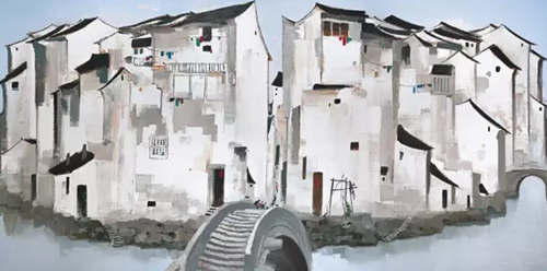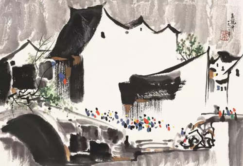 每個人的心中,都有一個江南。或許最美的,是吳先生筆下的那個江南。或許,那也是我們心中最美的江南。干凈的書風,寫意的場景,超實入境,超凡入圣。江南,因吳冠中而更美。江南建筑是漢族傳統民居建筑的重要組成部分,江浙水鄉注重前街后河,但無論南方還是北方的漢族,其傳統民居的共同特點都是坐北朝南,注重內采光;以木梁承重,以磚、石、土砌護墻;以堂屋為中心,以雕梁畫棟和裝飾屋頂、檐口見長。水墨畫的江南建筑,別有一番韻味!