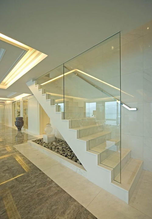 現(xiàn)代的農(nóng)村歐式別墅裝飾簡(jiǎn)易時(shí)尚,摒棄了復(fù)雜的雕刻,采用現(xiàn)代化的手法,直接用純凈的玻璃代替樓梯的扶手,保障樓梯的安全,白色的階梯清新舒爽,搭配少見(jiàn)的不銹鋼的掛壁扶手,簡(jiǎn)單中富含豐富的層次和時(shí)尚的搭配,讓人眼前一亮。