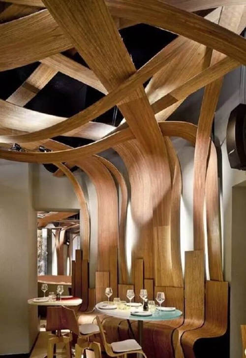原木是建筑創作中最早被利用的自然元素之一。用原木打造的空間體現了原生態,具有回歸自然的意味,看上去沒有任何修飾,實際上原始木材的紋路、紋理是最自然的表現。“原木元素”材料不僅在造型、結構和用材上獨具一格,且在裝飾上能更好地彰顯出民族文化。
