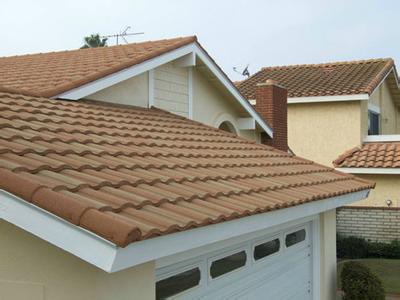 水泥彩瓦,是用一定比例的水泥砂漿進行壓?;驖L壓制作而成,其產品成份是水泥、砂及顏料經過工廠加工制作的,其主要特點是搭接牢固,且可采用干掛施工方法(屋面瓦與屋頂結構層有一個隔空層,對其隔熱效果相對比較好)。由于水泥瓦采用上下搭接,左右咬接的施工方式,你防水性能相對西瓦比較強,可當作第一道防水功能,增強屋頂的防漏;再者,水泥彩瓦顏色豐富,一片瓦片可以有兩種甚至三種顏色,安裝在屋頂以后相對比較美觀,且水泥瓦有波紋瓦與平板瓦兩種,有較多的選擇。