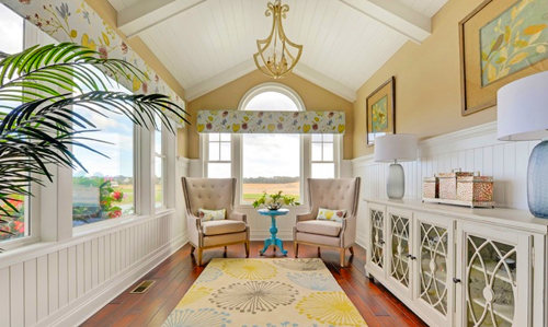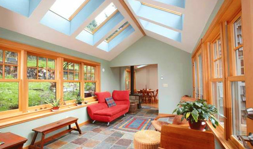 在別墅的一角,留一個小空間,建一間陽光房。在閑暇之余,忙里偷閑,就那么安靜的坐在陽光房里,停下來,感受生活之美。清晨,陽光透過落地窗撒到地面,金色的光芒,填滿了整個房間.....很喜歡這種感覺,簡單而讓人舒適。想要一間陽光房,不用太大,可以賞花望月,休憩,品茶。