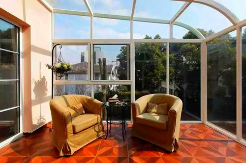 利用透明、半透明或者彩繪玻璃作為陽(yáng)臺(tái)頂面,優(yōu)點(diǎn)是采光充分,視野開(kāi)闊,給人清新而開(kāi)朗的體驗(yàn),缺點(diǎn)是清潔難度較大,長(zhǎng)期日曬雨淋下使用壽命會(huì)受影響。