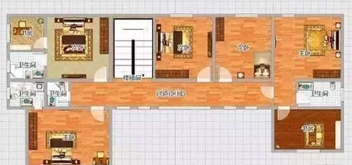 二層建筑面積為172平方米,共有5個(gè)臥室,二胎政策放開(kāi)了,所以中間計(jì)劃了兩個(gè)小孩的臥室。