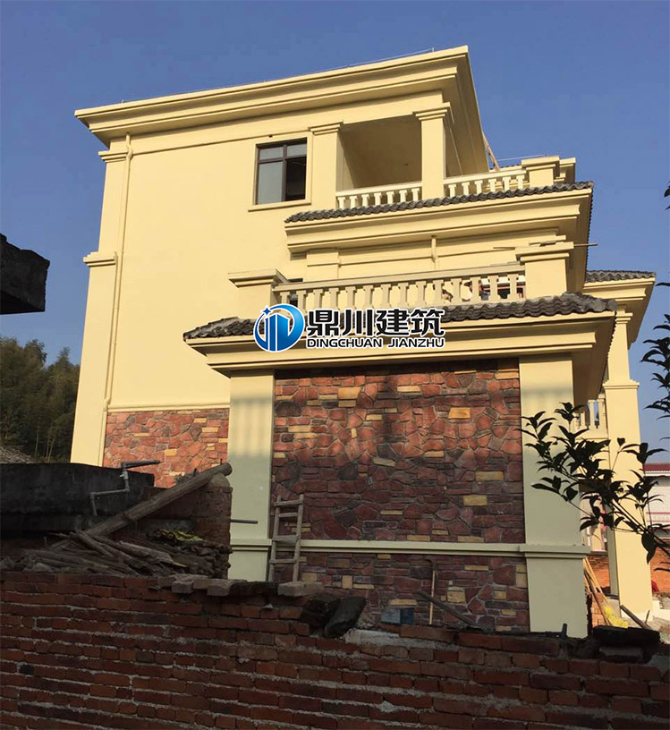 這是建好后的正面外觀。是不是看著還挺大氣?簡歐風格的建筑,農村人都喜歡在門口設計一個門廳,做一個緩步空間,下雨的時候也不至于雨水直接落在門前。