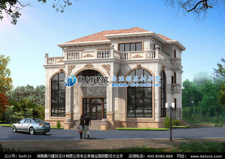 W0109大氣三層帶露臺(tái)別墅設(shè)計(jì)外觀效果圖,鼎川別墅定制設(shè)計(jì)