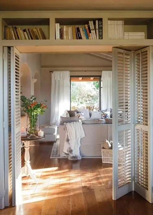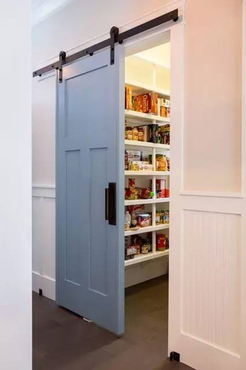 谷倉門主要的材質是合成木板,表面噴漆,可供選擇的款式比較多,而且基本上都是吊軌的設計,不容易藏污納垢。這樣的實心推拉門不僅可以節省一定的空間,還能保護你的隱私唷~不過采光不好的戶型最好不要選。