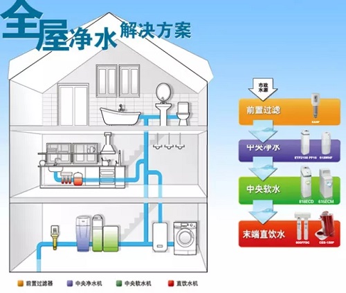 中央水處理系統(tǒng)包括中央凈水、中央軟水、中央純水、中央熱水四個部分。中央凈水系統(tǒng)先有效清除水中的氯、重金屬、細菌、病毒、藻類及固體懸浮物,后用活性炭進一步去除各有機物,讓出水清澈、潔凈、無鹵,可直接飲用,系統(tǒng)具備自動維護功能。中央軟水系統(tǒng)是通過天然樹脂置換出水中的鈣、鎂離子等,降低水的硬度,有效減少對衣物的磨損,保護人體皮膚,避免管道、潔具、衛(wèi)浴設備等結垢問題。中央純水系統(tǒng)采用反滲透法,經(jīng)精密計算的五道過濾程序,使出水變?yōu)榧儍羲缓魏坞s質和礦物質。中央熱水系統(tǒng)是指用一臺熱水器隨時隨地多處同時供應熱水。熱水集中在一個地方產生,大容量的熱水同時,多頭通過保溫管道供給熱水。專家建議,為了您的自身健康和設備的安全,十分有必要安裝中央水處理系統(tǒng)。