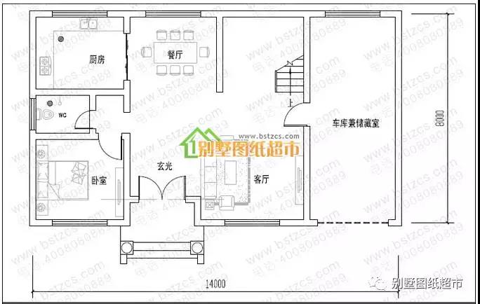 一 層:客廳、臥室、廚房、餐廳、衛(wèi)生間、車庫(兼儲藏室)