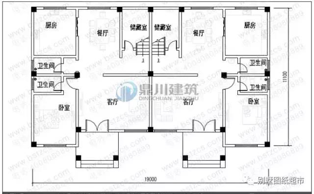 此款三層雙拼別墅圖紙編號: DC0301,開間19米,進深11.1米,占地面積203.04平方米,建筑面積625.05平方米,主體造價在50萬以上。