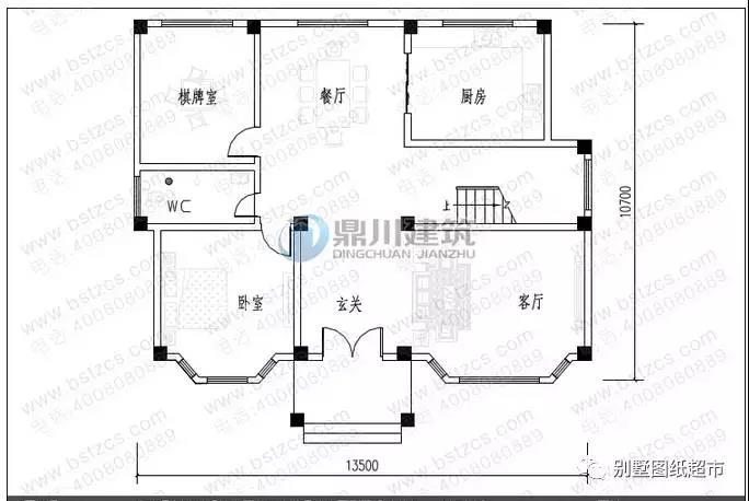 一 層:玄關、客廳、臥室、棋牌室、廚房、餐廳、衛生間