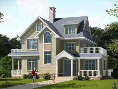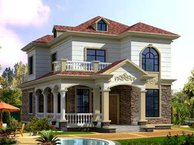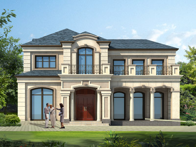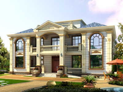 D0248漂亮的二層帶露臺歐式別墅外觀效果圖,鼎川建筑歐式別