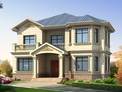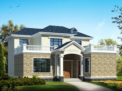 J0178歐式二層帶露臺農村別墅外觀效果圖,鼎川建筑二層歐式