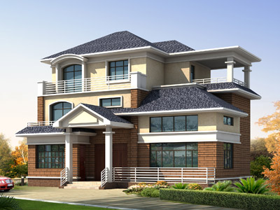 HY046三層平屋頂歐式別墅設計圖外觀效果圖,鼎川建筑三層別