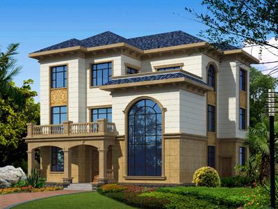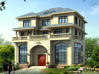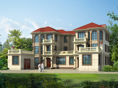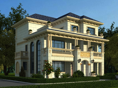 HY050歐式三層復式別墅設計圖外觀效果圖,鼎川建筑三層歐式