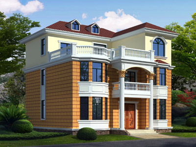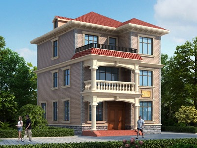 HY048三層帶露臺小別墅效果圖,鼎川建筑農村三層自建房屋設