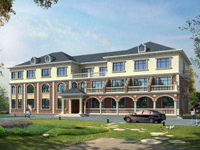 J0188漂亮豪華的三層酒店設計圖外觀效果圖,鼎川建筑私人定