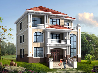 L0269三層帶露臺歐式別墅設計外觀效果圖,農村歐式自建別墅