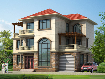 HY045三層帶車庫農村別墅設計圖效果圖,鼎川建筑三層農村別