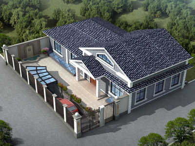 YZM020一層帶院子農村自建別墅效果圖設計,鼎川建筑一層農