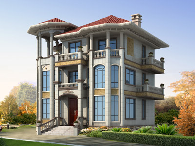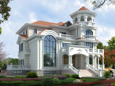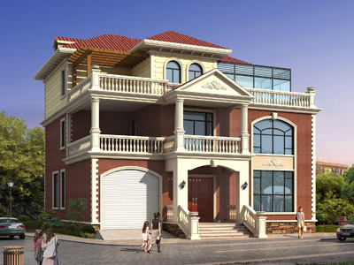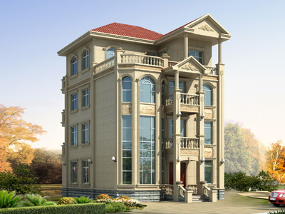 ZH005歐式三層帶露臺別墅設計圖效果圖,鼎川建筑歐式別墅設