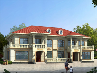 D0234歐式二層雙拼別墅外觀效果圖,鼎川建筑雙拼別墅設計