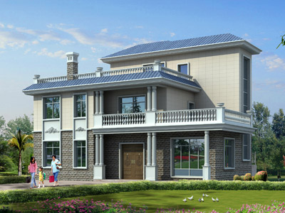 E0216新農村三層小別墅設計效果圖,鼎川建筑三層農村自建房