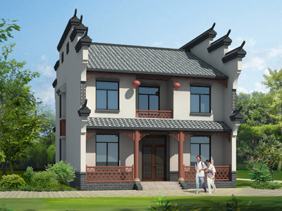 D0229二層中式徽派小別墅設計圖效果圖,鼎川建筑中式別墅設